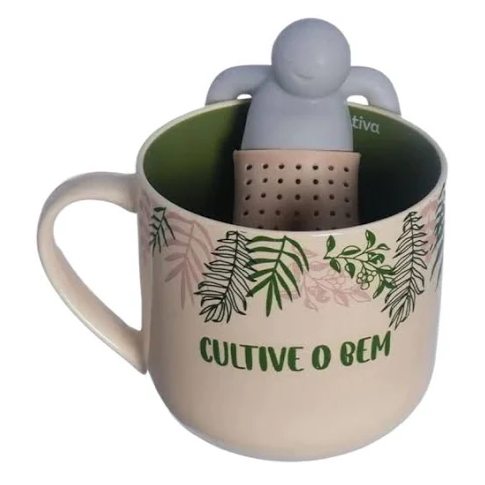 Um cházinho cai bem né! Para fazer o chá é só adicionar água quente na caneca, ervas de sua preferência no bonequinho e aguardar uns minutinhos, fácil e delicioso!